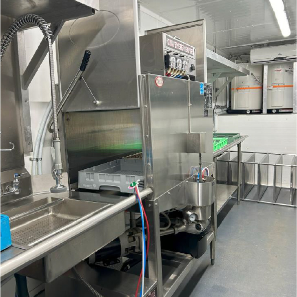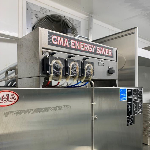 • Lave-vaisselle cma double rack basse température (80 rack à l’heure et utilise .97 gallons d’eau par lavage)